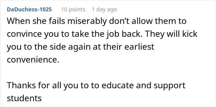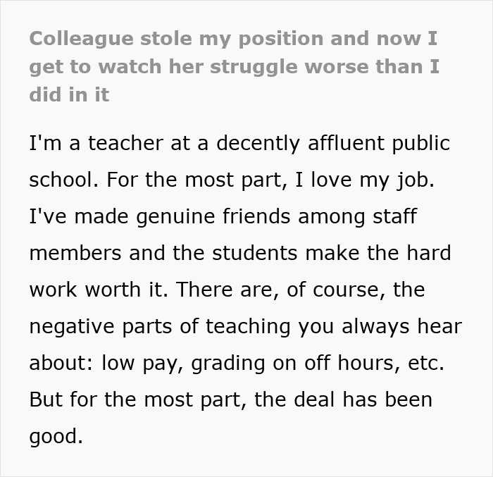 This is what a teacher did when she misled her superior and ultimately stole her coworker’s leadership position. However, she soon realized that she wasn’t fit for the job’s obligations as she struggled through every step like an amateur.