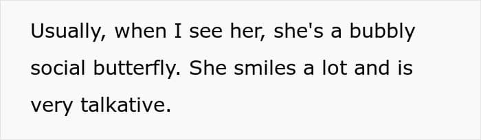The boy’s girlfriend is African American. Believe us, it’s relevant to the story, or we wouldn’t be bringing race up. Usually, the girl is a bubbly social butterfly; she smiles and talks a lot.