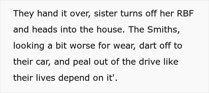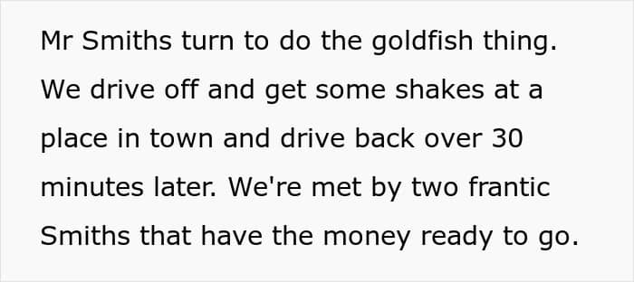 After trying guilt and manipulation, the Smiths finally caved. They paid what they owed, plus that night’s rate upfront. Their flustered dash to Mr. Smith’s big award ceremony was almost cartoonish. OP’s sister got her money, her family got milkshakes, and local sitters soon learned never to work for the Smiths without clear terms.