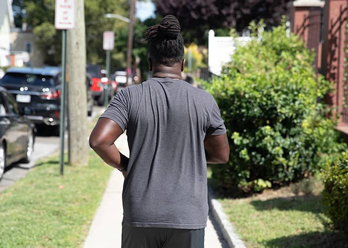 I was doing some work in a neighborhood, upper middle class white neighborhood. On a break I walked two blocks turned right,two blocks. . . ya know, to make a square. . . anyway, cops got called because I was “casing houses and peeking in windows” from the sidewalk obviously preparing to do some burglary because of my skin color and all. .. . So I got “pulled over” frisked (cuffed ya know for my protection) and interrogated (all my pockets turned out without consent) for taking a walk on a break.