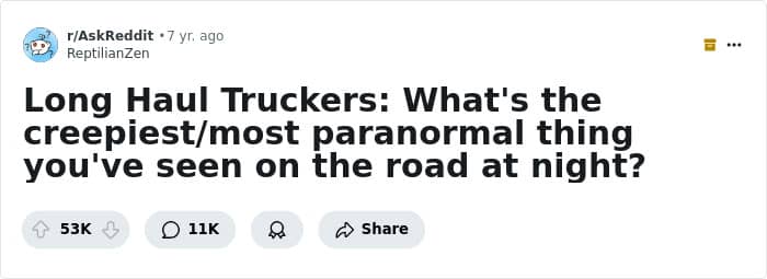 When one Redditor asked long haul truckers to share the creepiest things they’ve experienced at night, the answers revealed just how strange the open road can get. Read on for some of the most memorable stories and upvote the ones that gave you chills.
