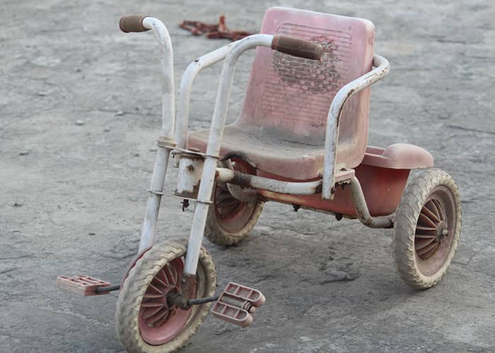 Riding my motorcycle out in the countryside I came across a small tricycle parked right alongside of the road. It was just so far from any houses that I was really kind of freaked out by it. I stopped and looked around, even checking down in the creek that ran alongside the road worried that some little kid could have gone exploring and fallen in. Not finding anything I rode on.