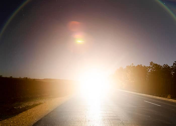 Suddenly on the horizon we see a light appear directly ahead of us. We keep driving normally, and the light is approaching us quickly. We (rightly) just assume it’s another car coming our way on the other side of the highway, but then as the vehicle goes to pass us…