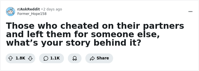 Members of the ‘Ask Reddit’ community have recently delved deeper into the topic, after one user addressed the people in the group who’ve ever been unfaithful to their partners. The netizen wanted to know how life changed after they cheated, and people shared all kinds of stories, covering everything from happy endings to scenarios way less fairytale-like. If you want to read their firsthand accounts, scroll down to find them on the list below, where you will also find We’s interview with board-certified clinical psychologist and author of Letting Go of Your Ex, Dr. Cortney S. Warren.