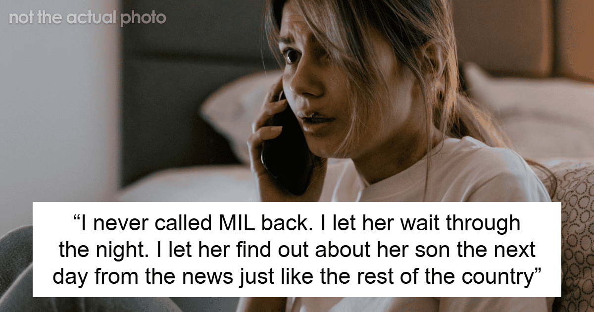 The OP was spiraling into panic, trying to figure out if she was about to become a widow before she’d even unwrapped all her wedding gifts. And then the phone rang, but it was not the call she’d hoped for. Instead, it was her mother-in-law, the woman who should, in theory, be equally panicked about the potential fate of her son.
