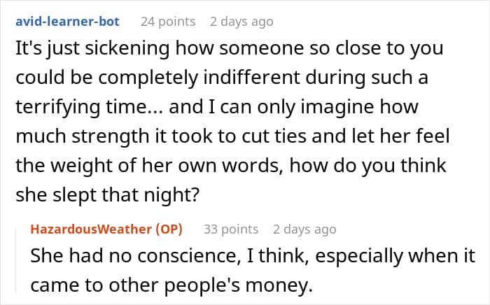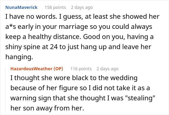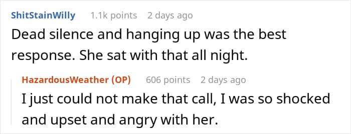 The OP, stunned and speechless, quietly hung up the phone and later found out that thankfully, her husband was safe, and it wasn’t his ship. But she didn’t rush to tell her insensitive mother-in-law the good news. Nope. She let her stew overnight, while probably still calculating casket costs in her head. And honestly? That little slice of petty revenge was well-earned.