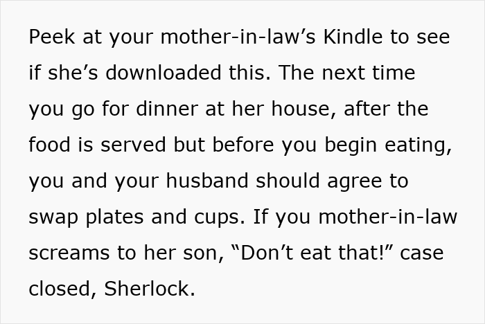 RELATED:This woman noticed that she was getting food poisoning every time she visited her mother-in-law
