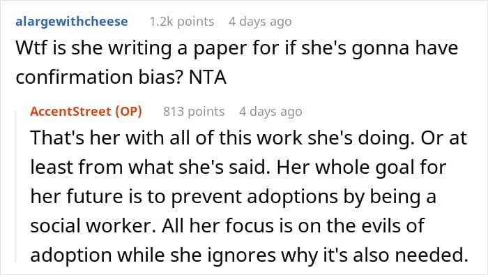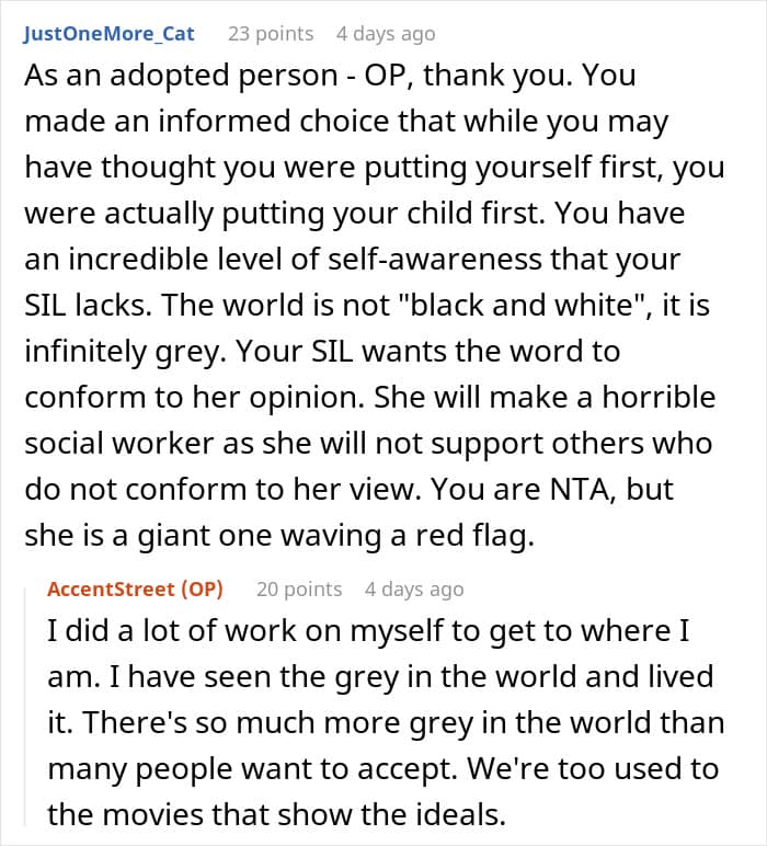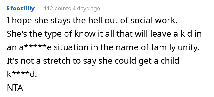 Many netizens came to the birth mom’s defense and worried about the SIL becoming a social worker