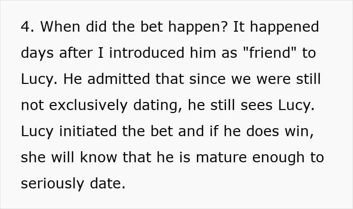 Most of the commenters under the original post are also inclined to think that Erwin, most likely, simply fell victim to circumstances. For example, one of the male responders claimed that when men want to do something romantic, but are afraid of being judged by their peers, they usually call it a bet. In any case, people are quite sure that it was Lucy who did something wrong here.
