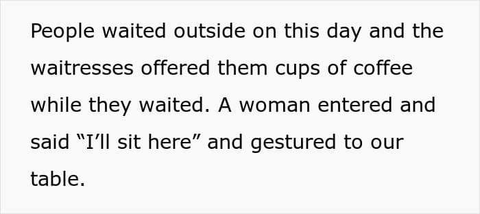 A woman decided not to wait for a table to free up but rather demand to be seated at their table while their toddler was still eating