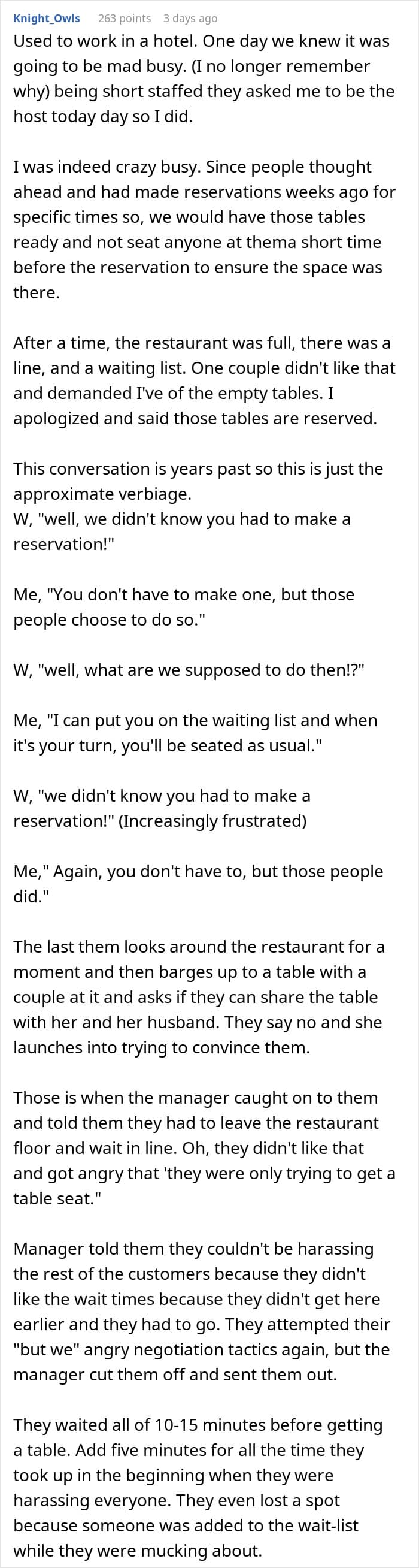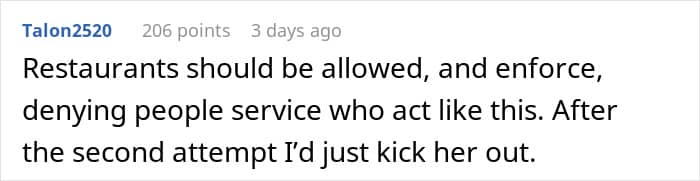 The comments shared their own stories of encountering rude clients at restaurants and agreed with the poster’s view