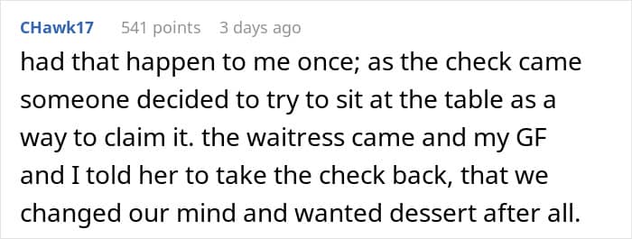 But barring that, you can’t really do anything about it, right? Even staring shouldn’t be overdone, especially when you’ve got no claim to the table.