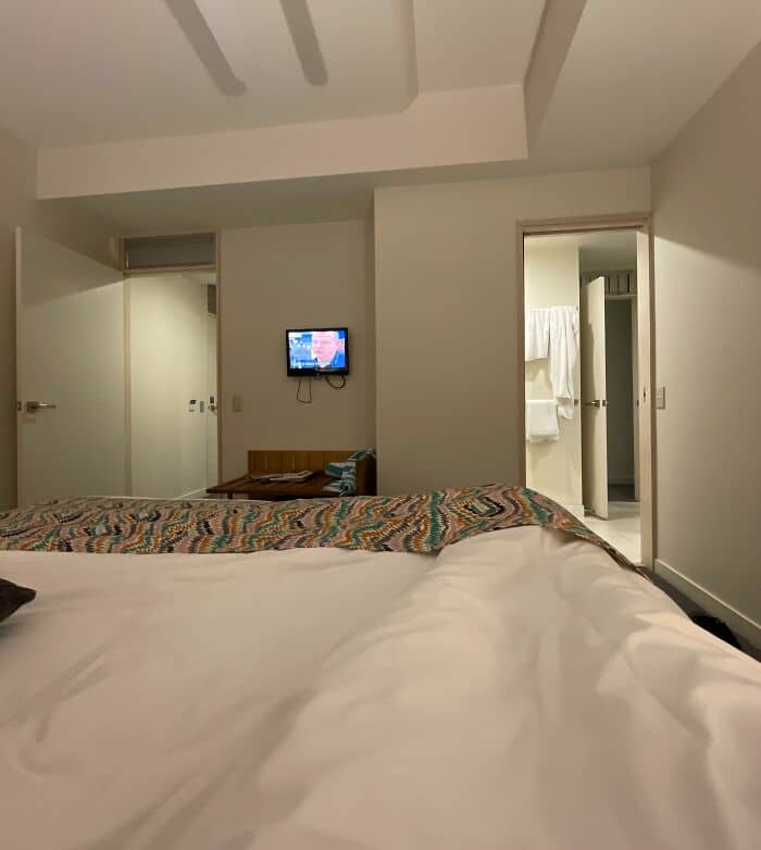 #84 This Hotel Room. The Shower And Sink Are Next To The Bed. The Toilet Is A Small Extra Room And You Need To Get Out Of The Room To Wash Your Hands