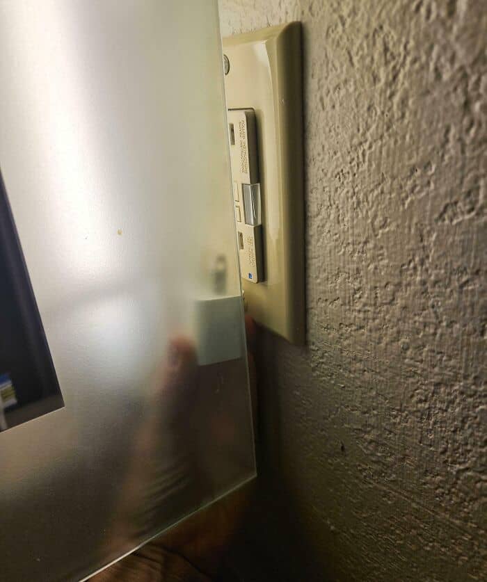 #46 Hotel Mirror Blocks The Only Outlet In The Bathroom