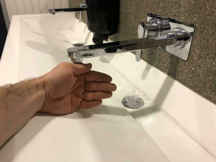 #76 Hotel Bathroom Sink With Barely Enough Room For Your Hands Because The Spouts Are Too Long/Low