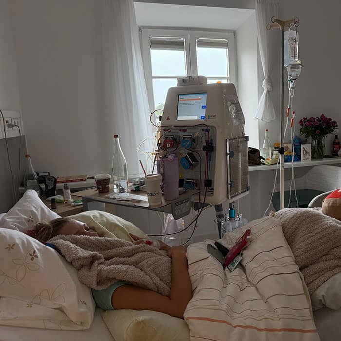 The mother-of-three, 61, shared pictures of herself by her daughter’s side as she lay in a hospital bed, hooked up to machines and tubes.
