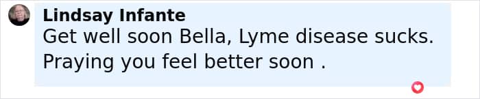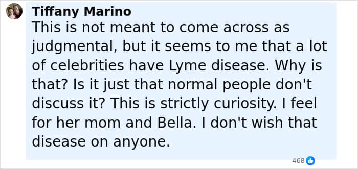 Her mother called her a “️Lyme warrior” in the comments section, while her sister Gigi Hadid also offered support.