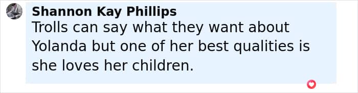 Yolanda assured her 28-year-old daughter she wasn’t alone and that she had her back “every step of the way.”