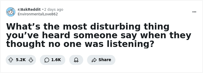 One person asked the internet, “What’s the most disturbing thing you’ve heard someone say when they thought no one was listening?” and netizens didn’t hold back with their responses. Here’s our collection of some of the most curious.
