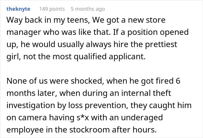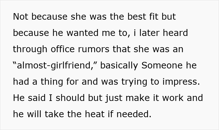 Several others shared similar experiences where bosses ignored qualified candidates and hired someone they were infatuated with instead