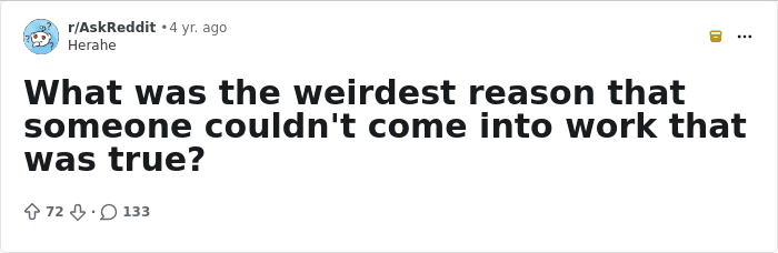 However, this data might make managers more suspicious than they need to be, because sometimes the genuinely odd reasons people give are actually true. Online accounts show plenty of cases where employees really did stay put due to unusual pet issues or plain bad luck—things that sound made up but weren’t.