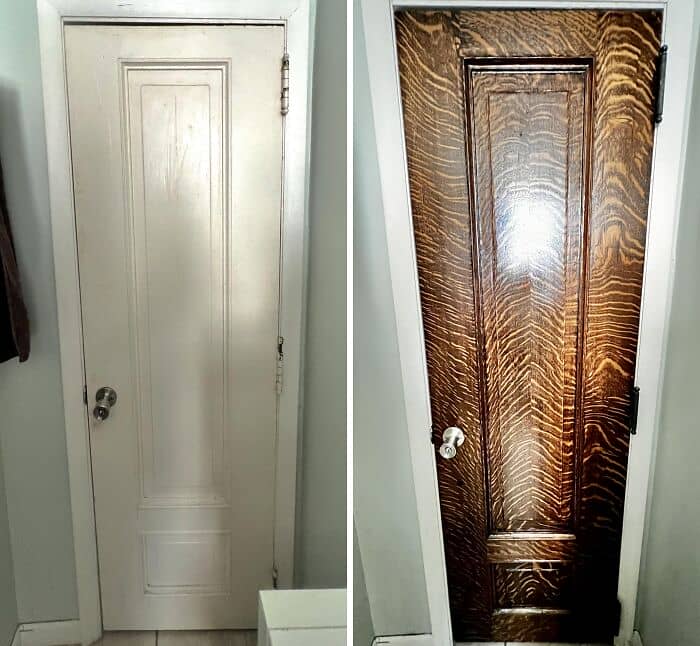 I started this project not knowing exactly what to expect to find underneath all the old crusty white paint. I’ve also never worked with quarter sawn wood before and wasn’t sure if the medullary rays were a mistake from not sanding the door correctly. The Reddit community kindly let me know that this was a very valuable find and not a mistake. Super excited to be done with this project and have such a great looking door restored to its former glory. Thanks for all your help and kind responses.