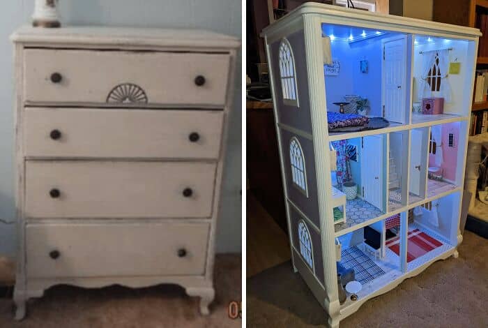 #25 DIY Barbie House Made From Old Dresser