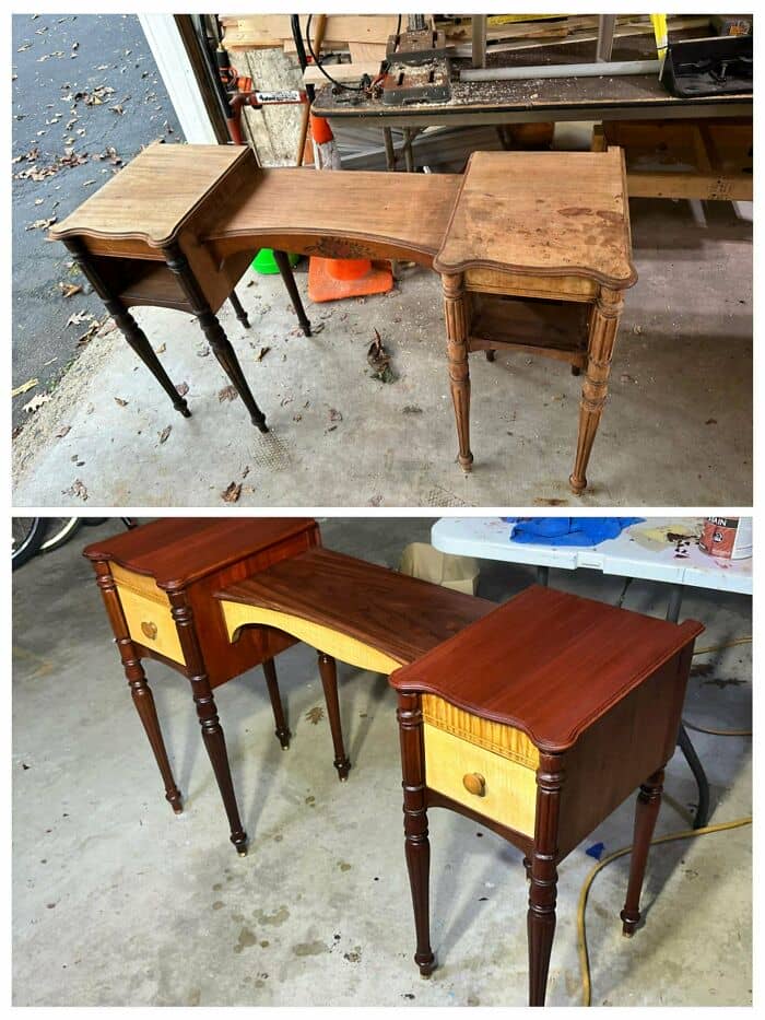 Those restorations where wooden furniture is brought to its original state I enjoy the most. When antique or vintage pieces get a good cleaning, a fresh coat of stain or wax and are repaired as needed, it makes my heart sing. Bonus points if they get freed from layers of paint that were clouding their original beauty.
