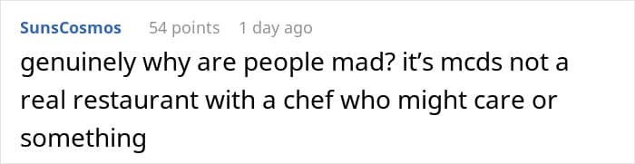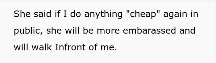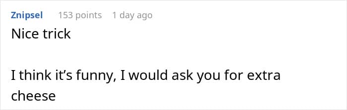 You see, our Redditor had brought some of their own to save on the order, and this didn’t sit well with their friend. She didn’t just call the move “embarrassing” but went so far as to threaten to walk ahead of them in public if they ever did anything so “cheap” again.