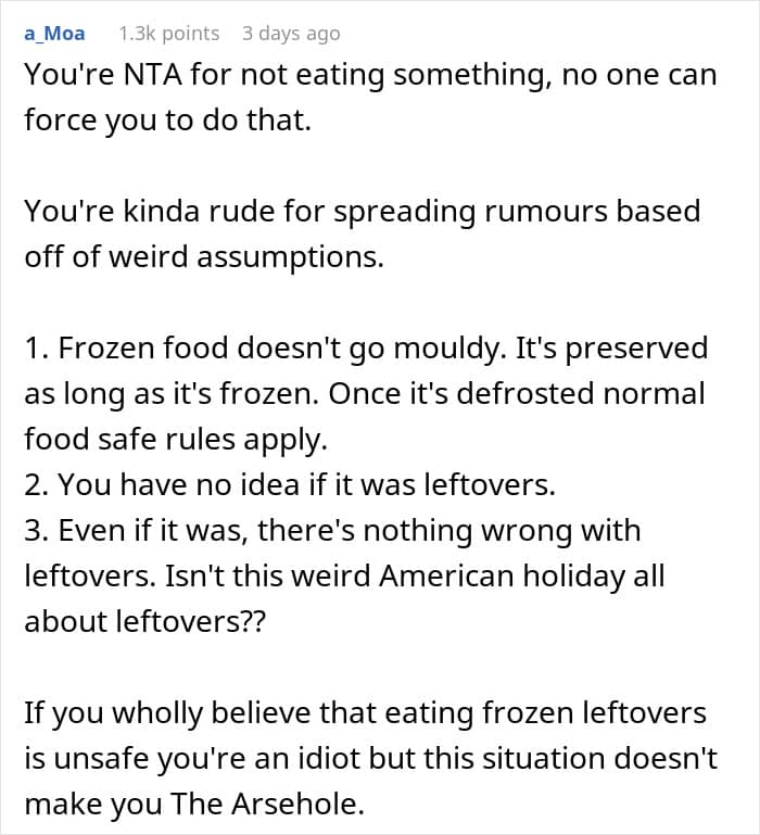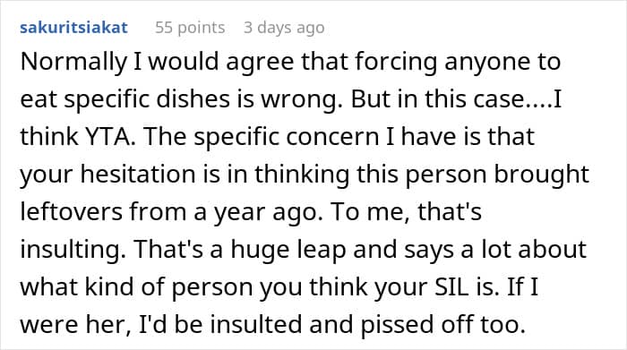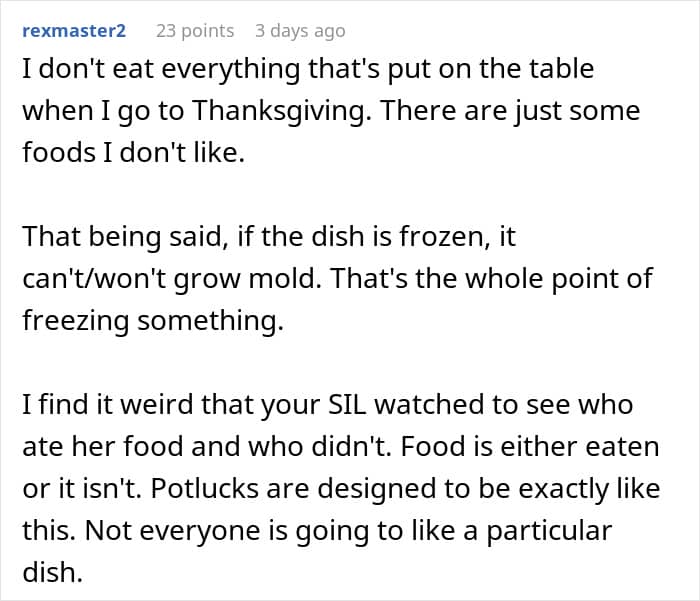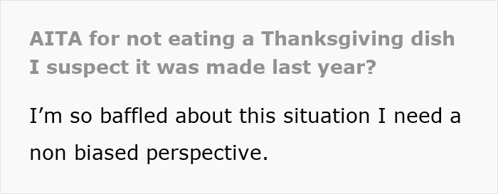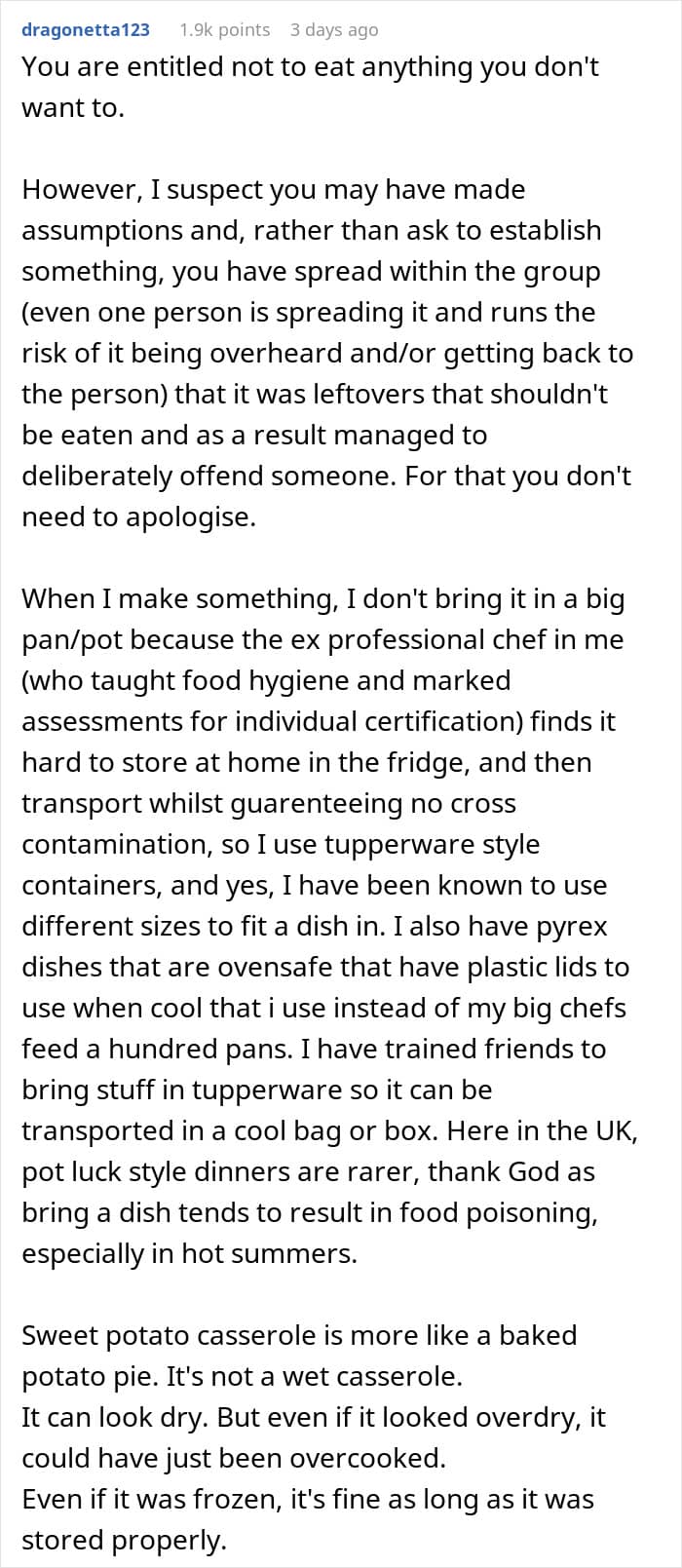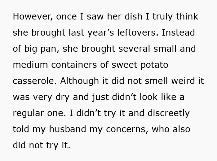 But as you may expect, this may cause some awkward moments, as this woman experienced. She refused to eat her sister-in-law’s sweet potato casserole after suspecting it was a leftover dish from the previous year.