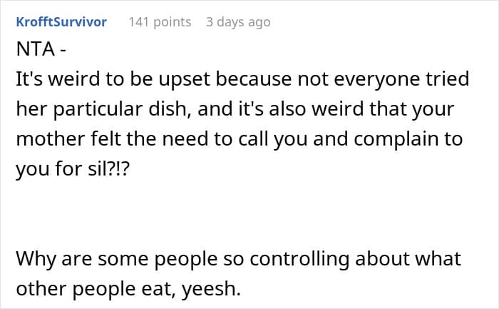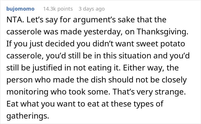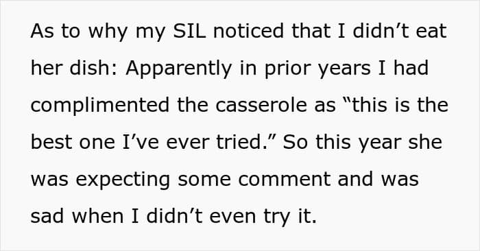 A woman refused to eat her sister-in-law’s sweet potato casserole, causing a bit of drama