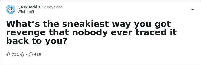 Redditors have recently been sharing the most brilliant acts of revenge they’ve somehow managed to pull off without getting caught. From taking karma into their own hands to getting petty payback via social media, this list is full of ideas for you to use on your own enemies, pandas. So have fun scrolling through and enjoying some sweet schadenfreude, and remember to upvote the stories that you find extremely satisfying!