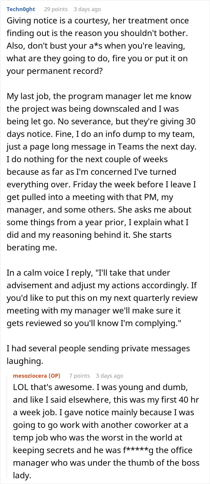 The torment went on until his last day on the job, but he got the last laugh through malicious compliance