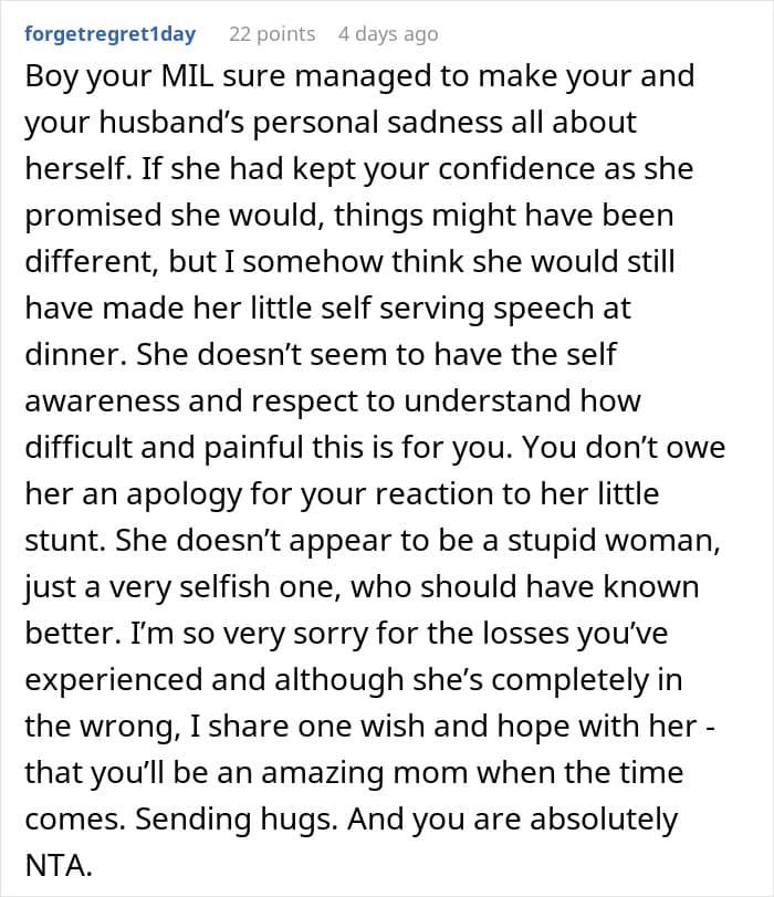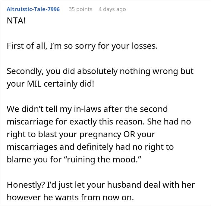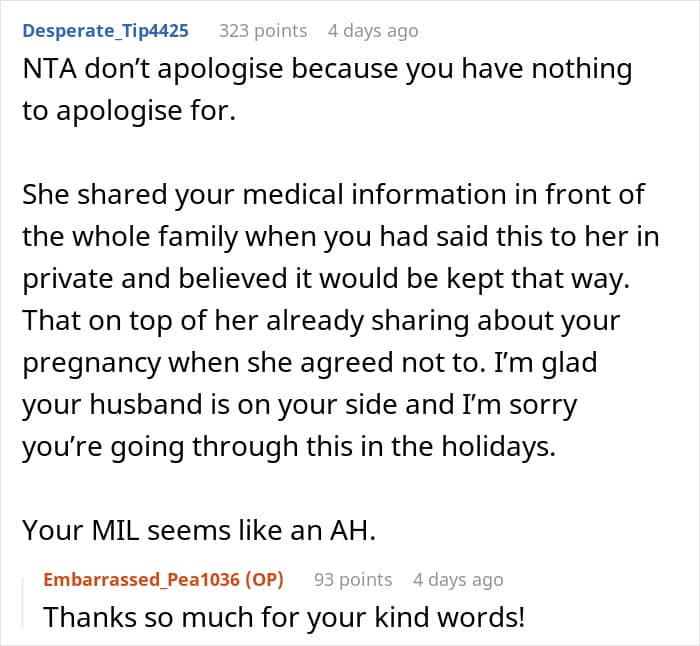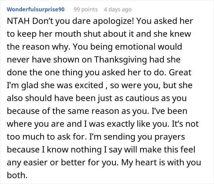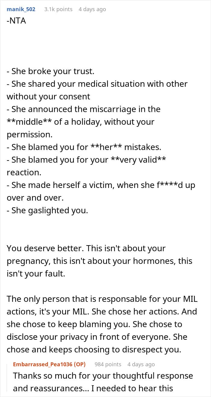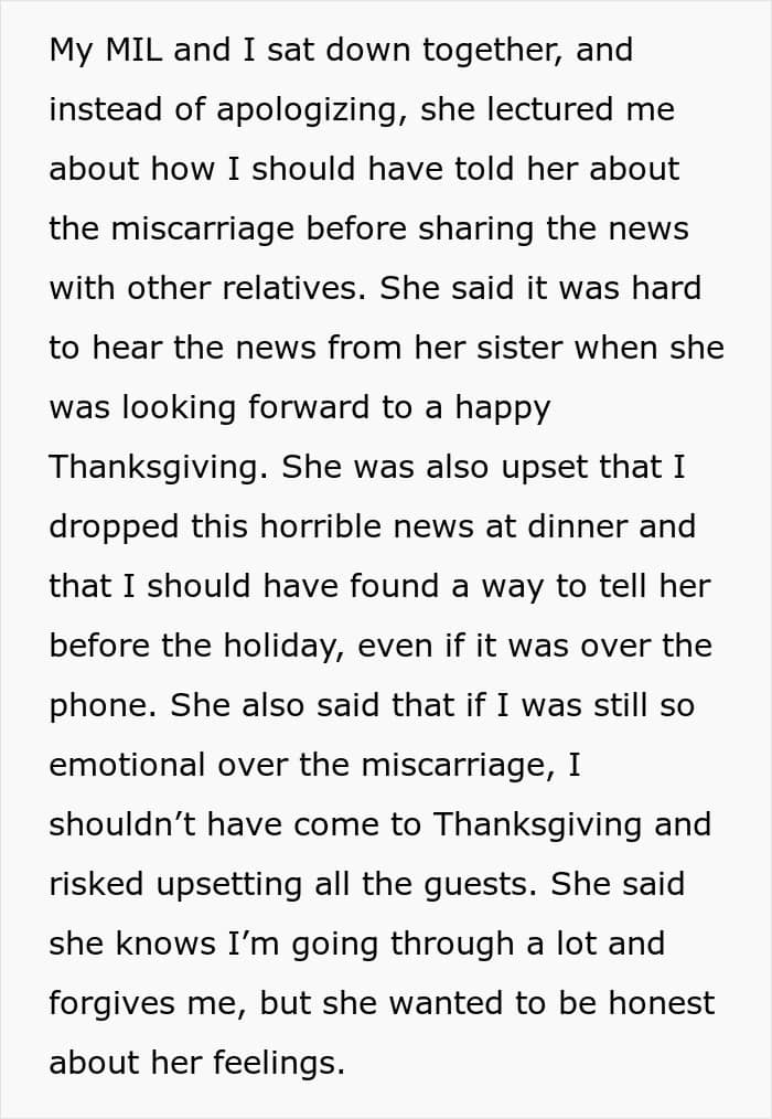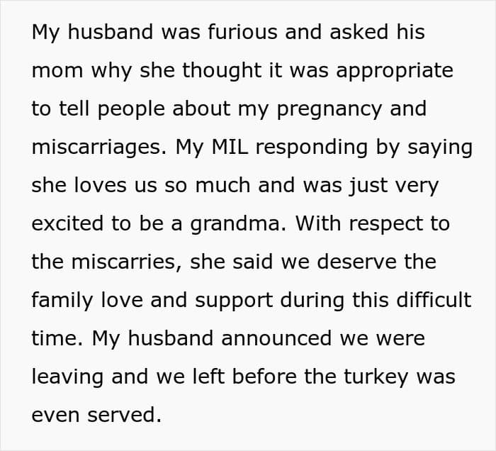For Reddit user Embarrassed_Pea1036, the pressure was especially heavy during Thanksgiving, when she was expected to act like all was good and well even though shehad just lost her pregnancy.