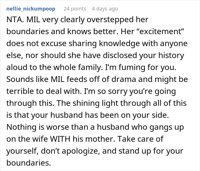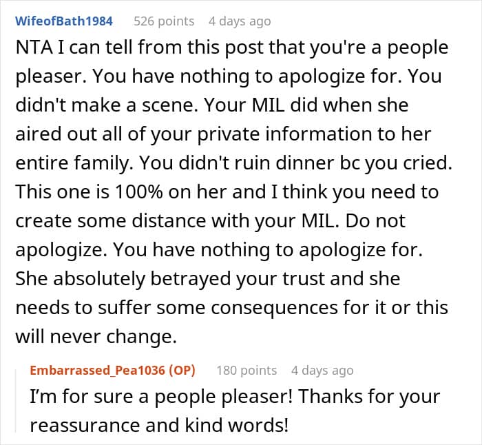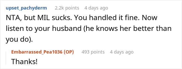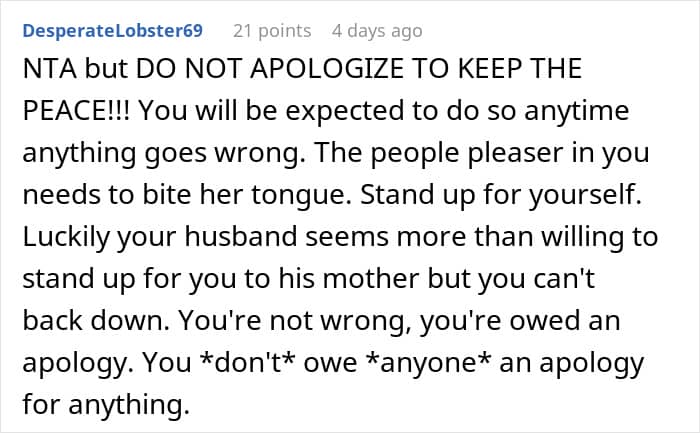 Most of those who read the story said its author didn’t owe her mother-in-law an apology
