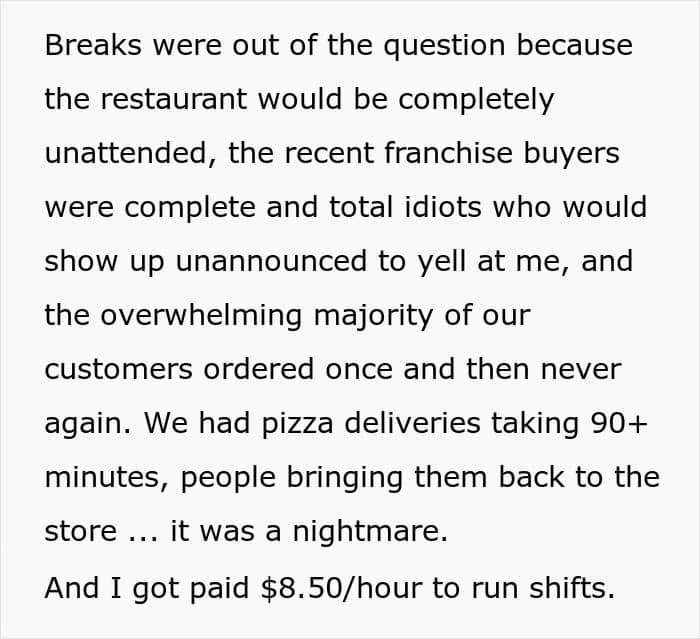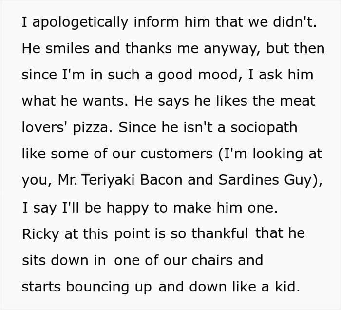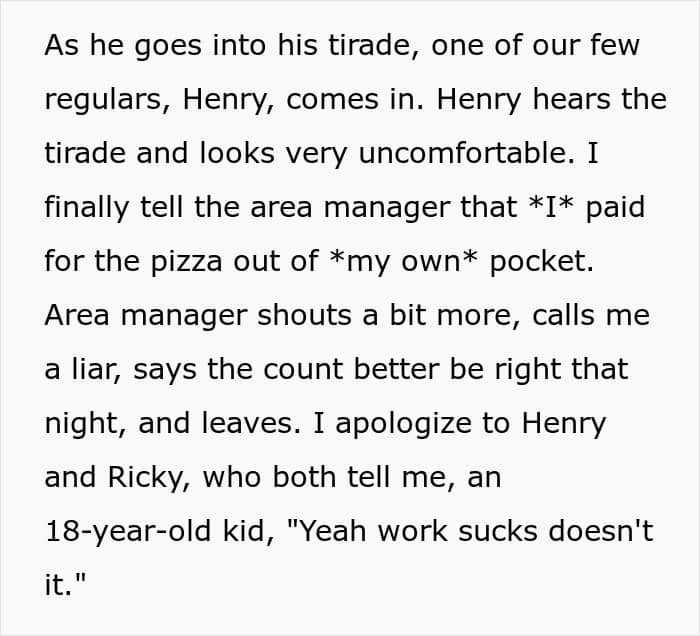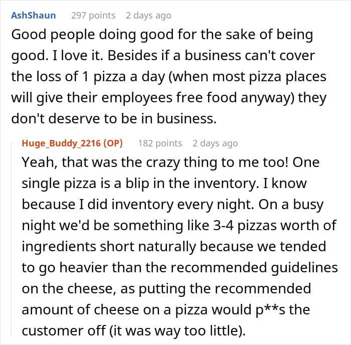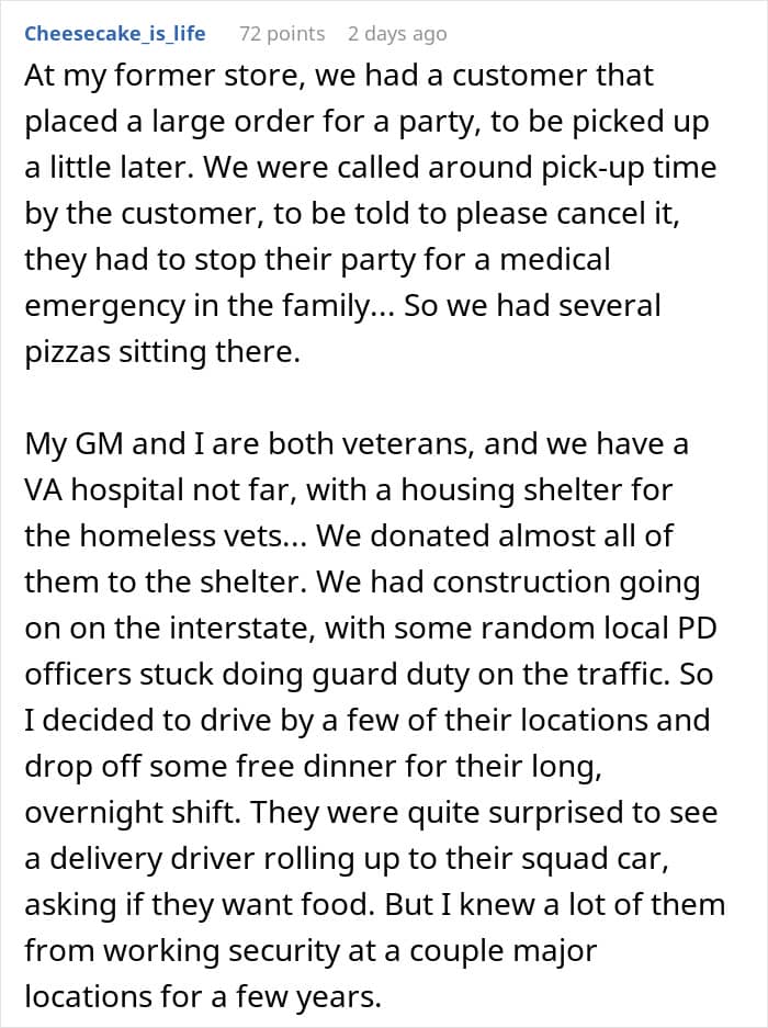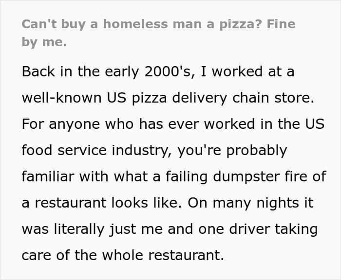 This former employee of a pizza place was once berated for buying a homeless man dinner