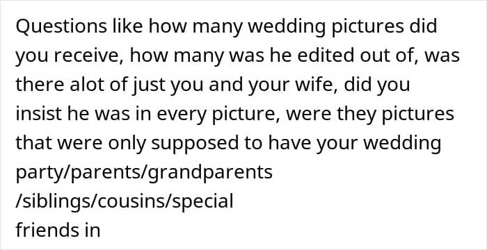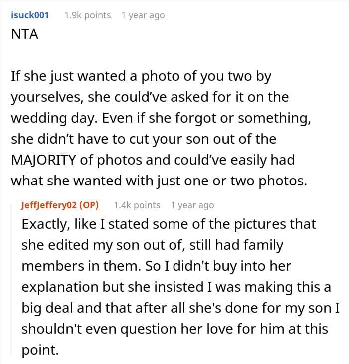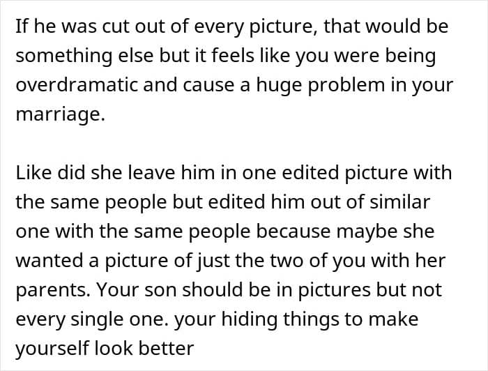 In a post on the subreddit ‘Am I the [Jerk?]’, he explained that during their honeymoon, he noticed his son (who he had with his previous partner) was cut out from many of the wedding photos. The man shared this with his wife, and she told him that it was her idea.
